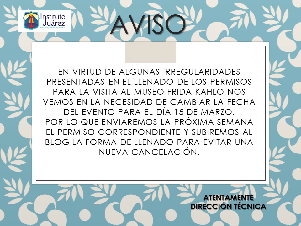 POR ESTE MEDIO SE ANEXA UNA MUESTRA DEL PERMISO PARA VISITAR EL MUSEO FRIDA KAHLO.